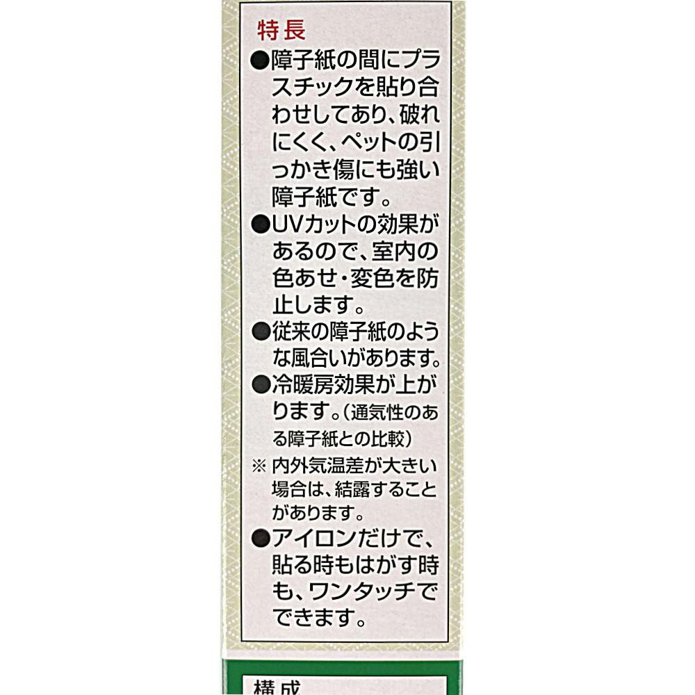 ●障子紙の間にプラスチックを貼り合わせてあり、破れにくく、ペットの引っかきキズに強い障子紙です。●冷暖房効果アップ!(通気性のある障子紙との比較)