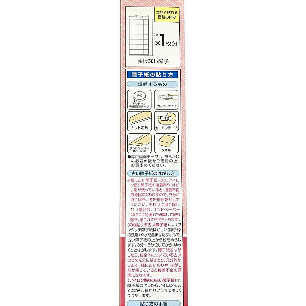 ●障子用ののりでは貼れません。●接着は、別売のアサヒペン専用両面テープ(5mm×20m)を必ずご使用ください。