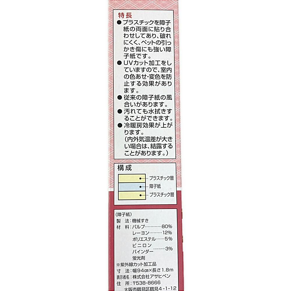 ●プラスチックを障子紙の両面に貼り合わせしてあり、破れにくく、ペットの引っかき傷にも強い障子紙です。●汚れても水拭きすることができます。●冷暖房効果アップ!(通気性のある障子紙との比較)