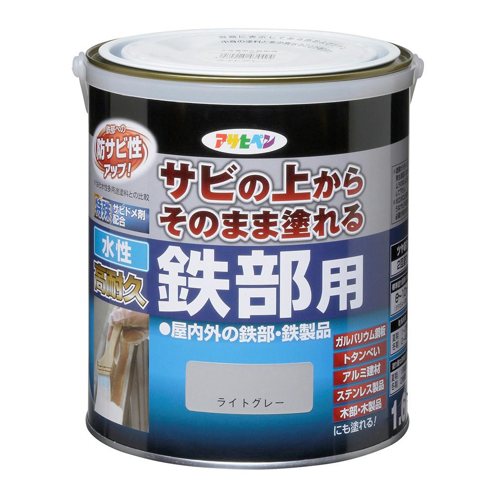 サビの上からそのまま塗れる 水性 高耐久 鉄部用 ライトグレー 1.6L
