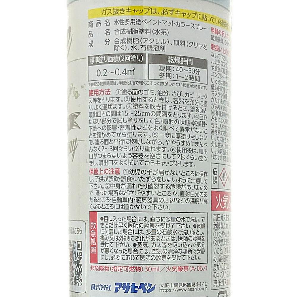 ・落ち着いたツヤ消し(マット調)に仕上がります。・スプレータイプでムラなく仕上がります。・水性で塗りやすく、低臭タイプの屋内外兼用塗料です。