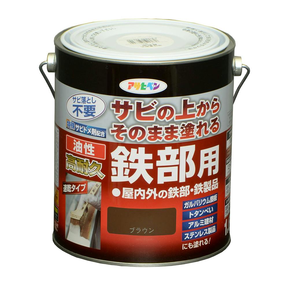 サビの上からそのまま塗れる 油性 高耐久 鉄部用 ブラウン 1.6L