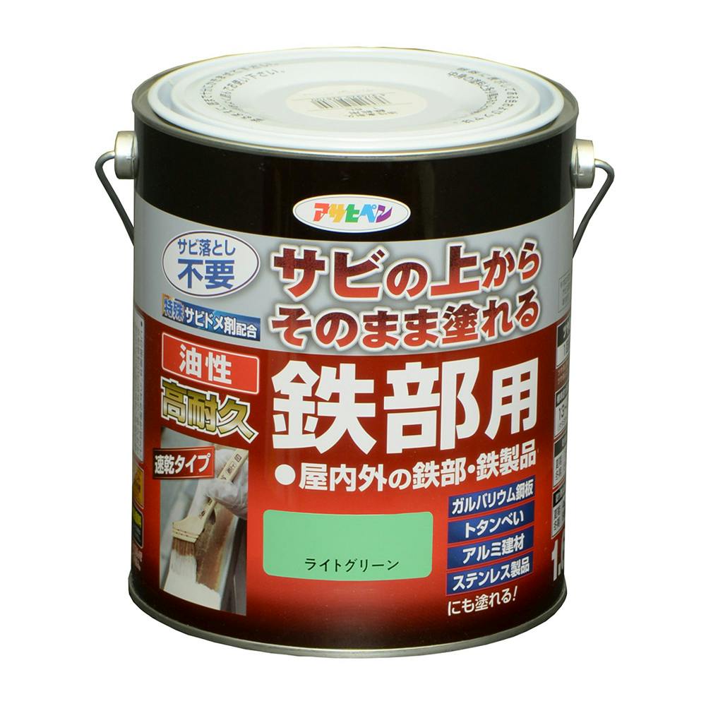 • サビの上からそのまま塗れる 油性 高耐久 鉄部用 ライトグリーン 1.6L