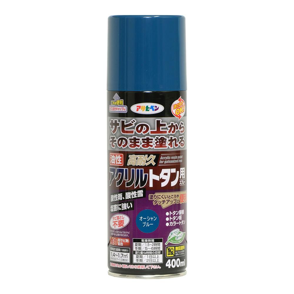 サビの上からそのまま塗れる 油性 高耐久 アクリルトタン用 スプレー オーシャンブルー 400ml