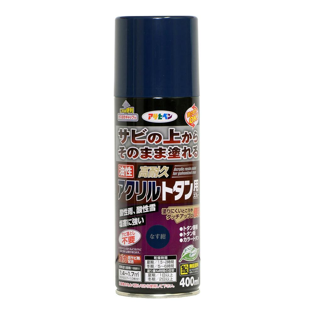 サビの上からそのまま塗れる 油性 高耐久 アクリルトタン用スプレー なす紺 400ml