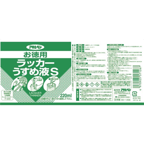 【CAINZ-DASH】アサヒペン お徳用ラッカーうすめ液S220ML 571267【別送品】