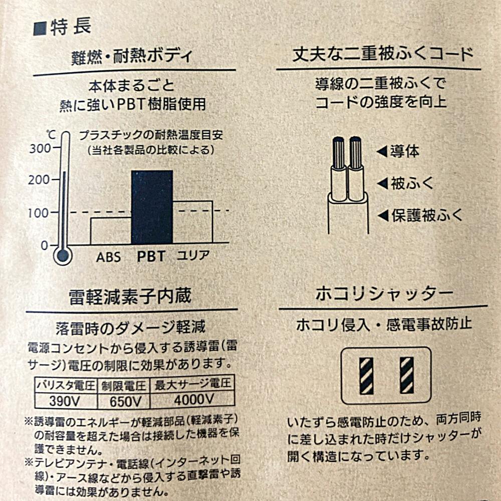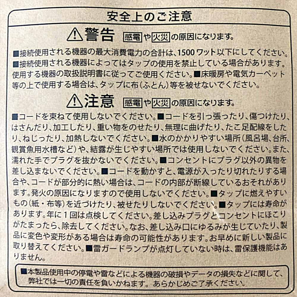 雷ガード付AC 3個口 タップ 3m 黒 HS-TK33SK-CA24