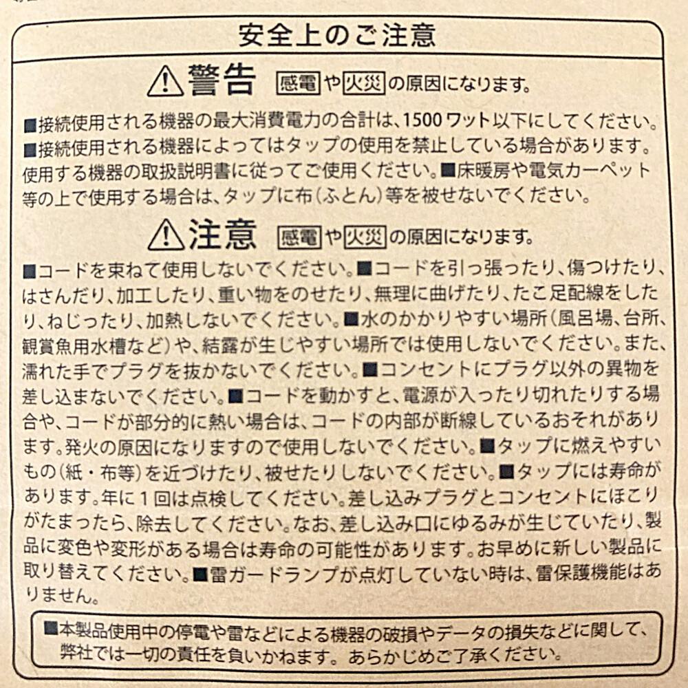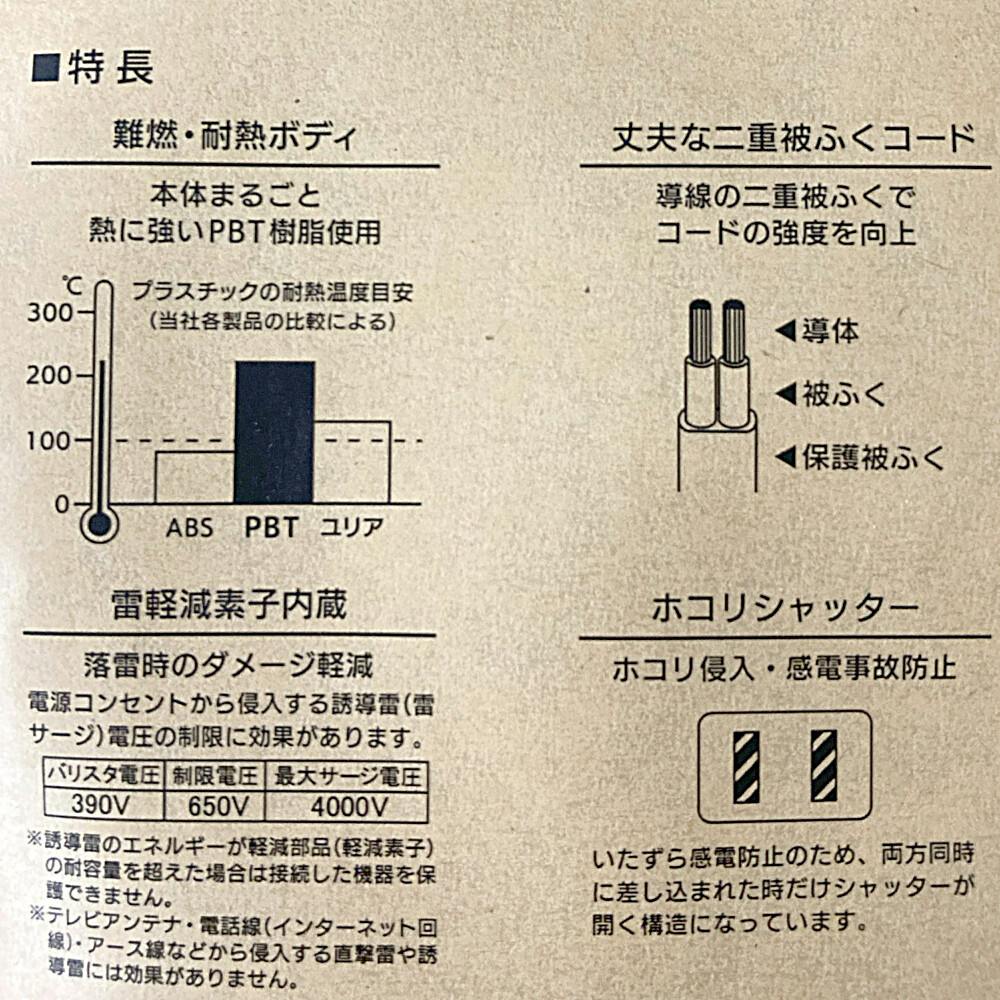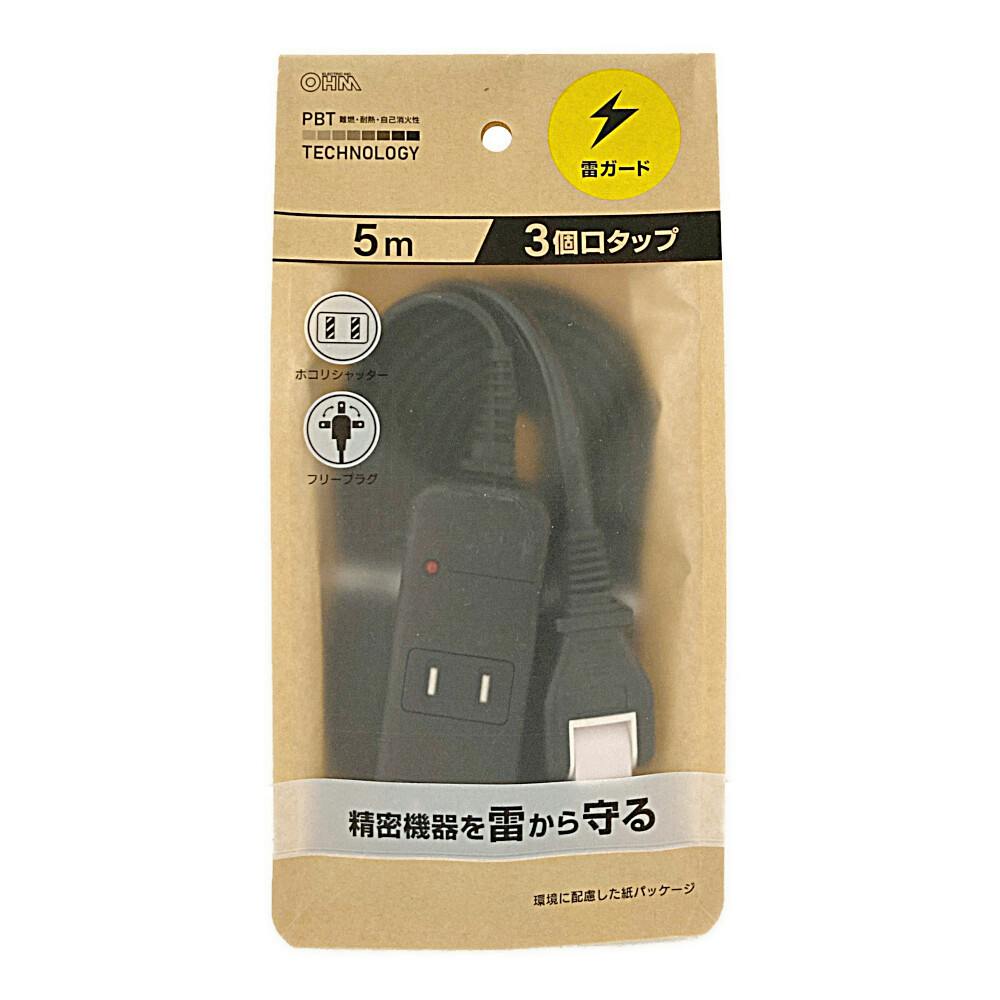 雷ガード付AC 3個口 タップ 5m 黒 HS-TK35SK-CA24
