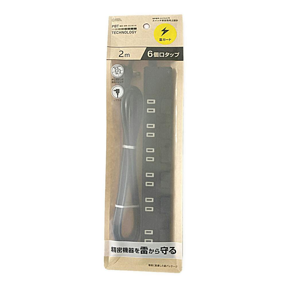 • 雷ガード付AC 6個口 スイッチタップ 2m 黒 HS-TPK62LK-CA24