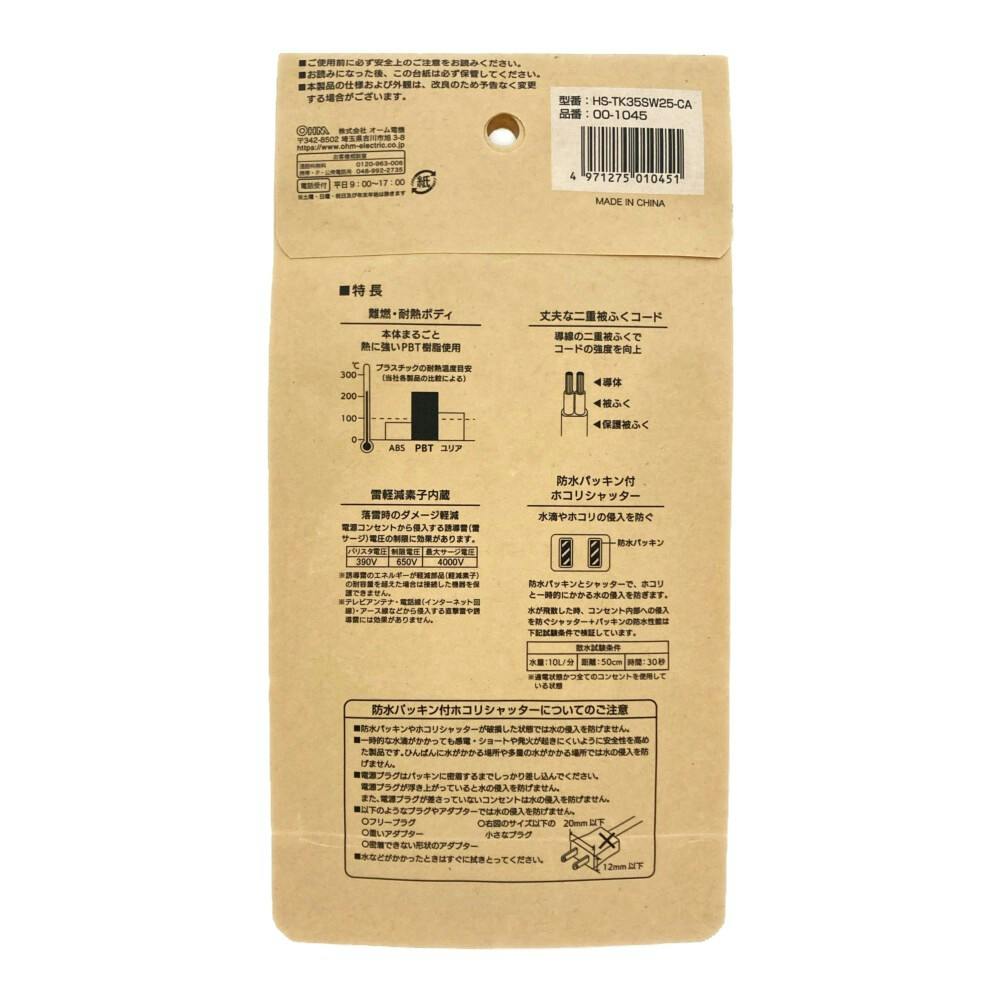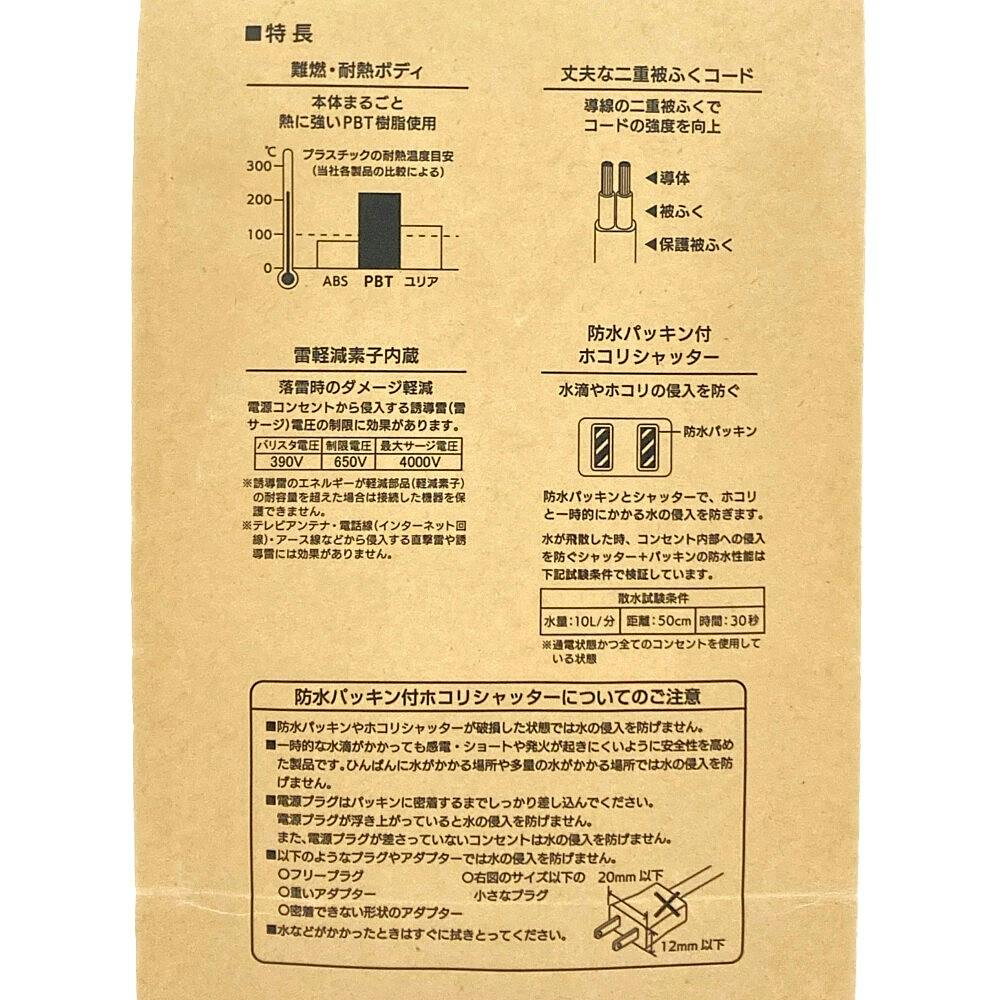 雷ガード付 AC3個口 防水パッキンタップ 5m 白