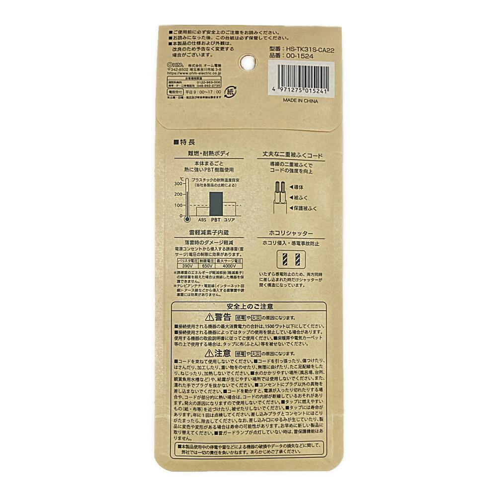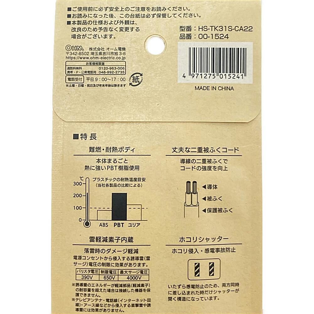 雷ガード付AC3個口タップ 1m ホワイト HS-TK31S-CA22