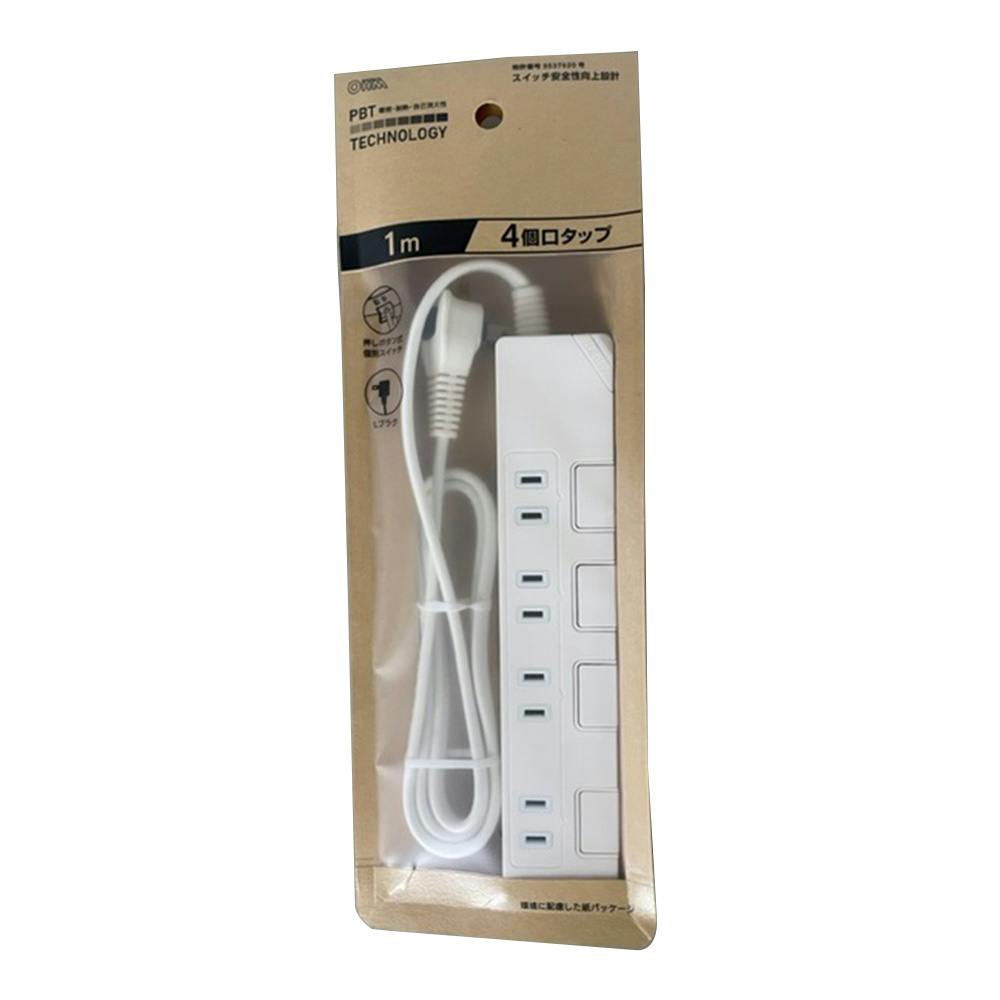 AC4個口スイッチタップ 1m ホワイト HS-TP41L-CA22