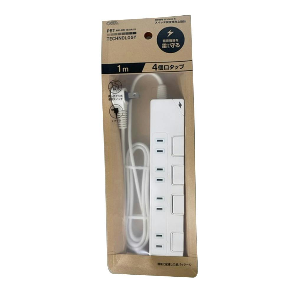 雷ガード付AC4個口 スイッチタップ 1m ホワイト HS-TPK41L-CA22