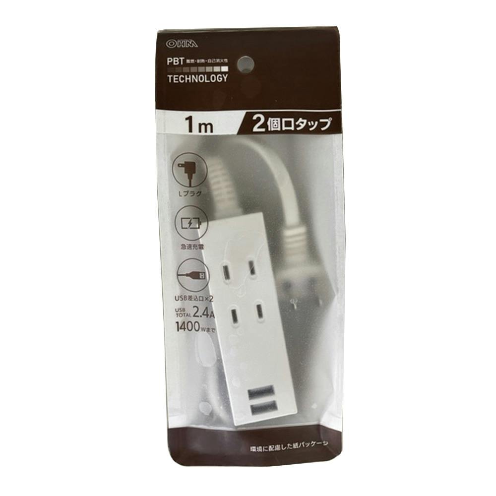 AC2個口 USB2個口 タップ 1m ホワイト HS-T21U2-CA22