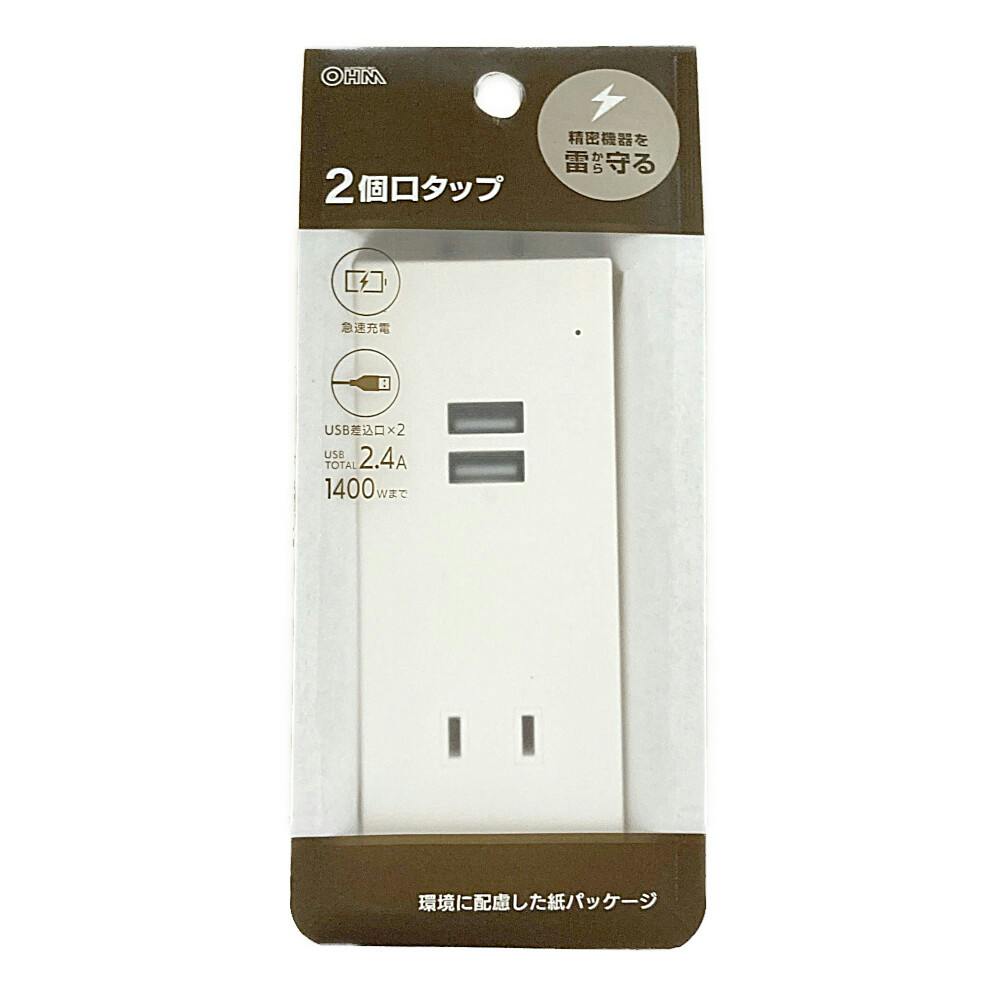 雷ガード付AC2個口 USB2個口 タップ ホワイト HS-TK2U2-CA22