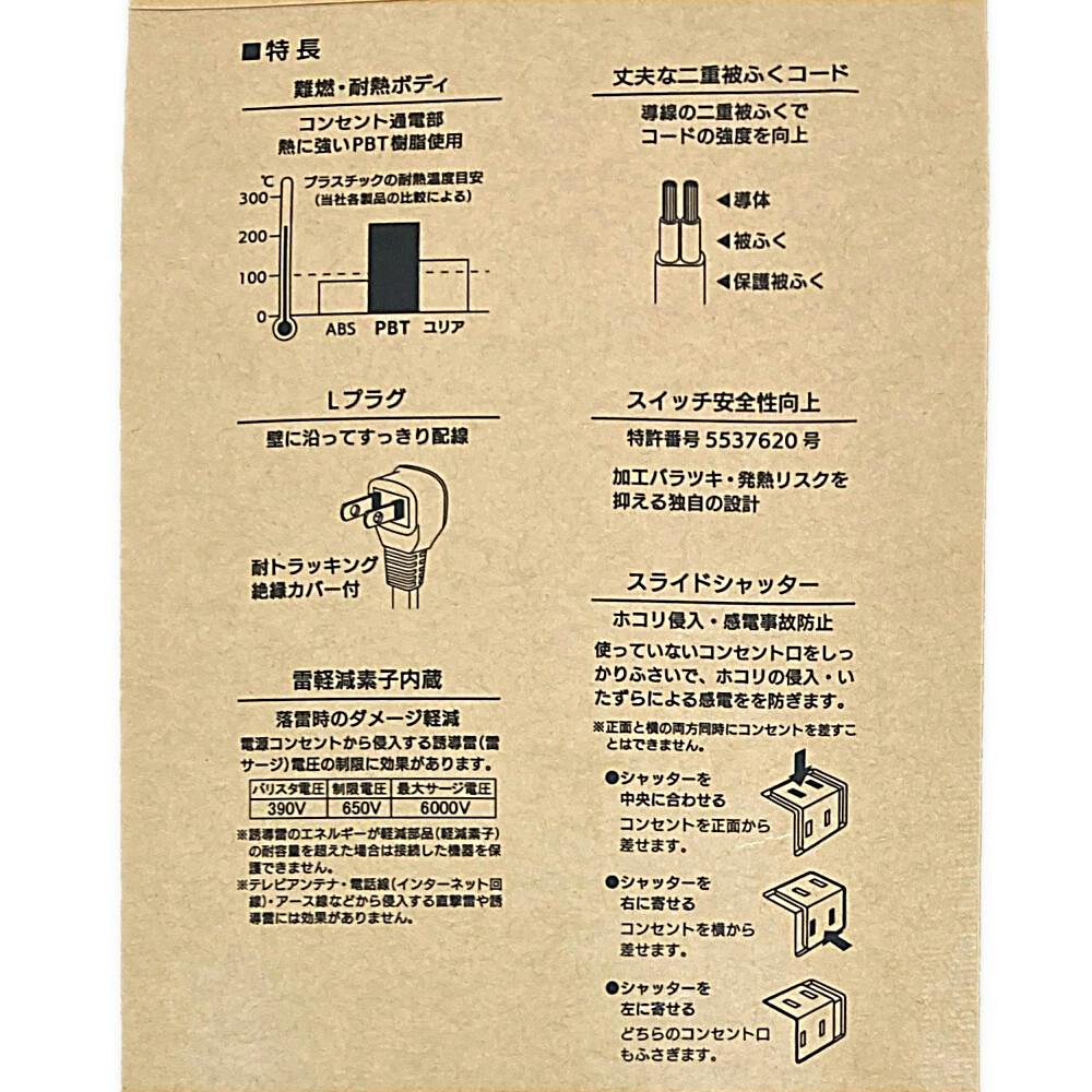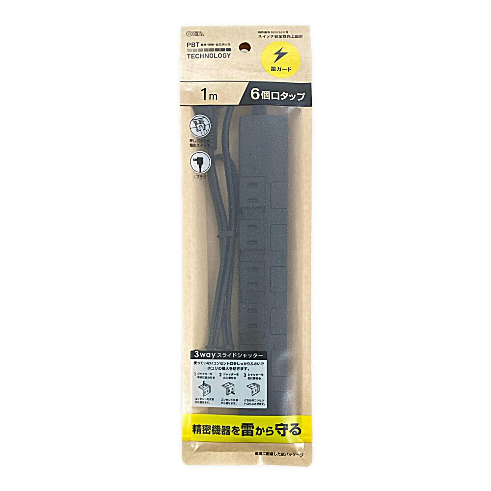 雷ガード スライドシャッター 6個口タップ 1m ブラック