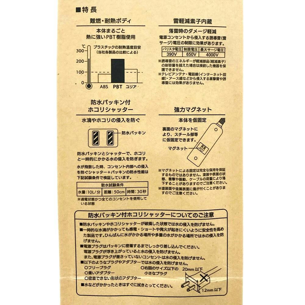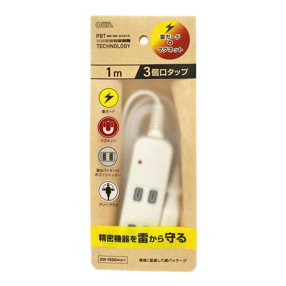 雷ガード AC3個口 マグネット防水パッキンタップ 1m
