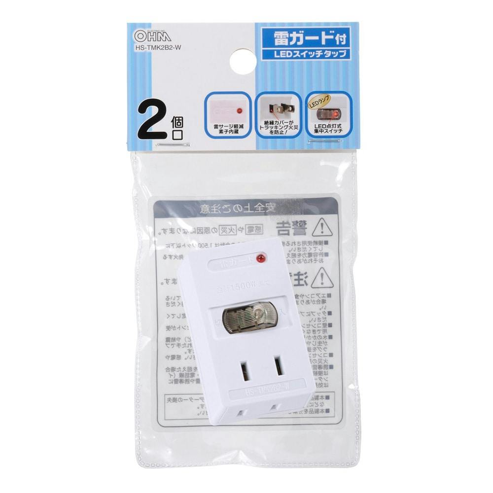 雷ガード付LEDスイッチタップ 2個口 HS-TMK2B2-W 00-2242