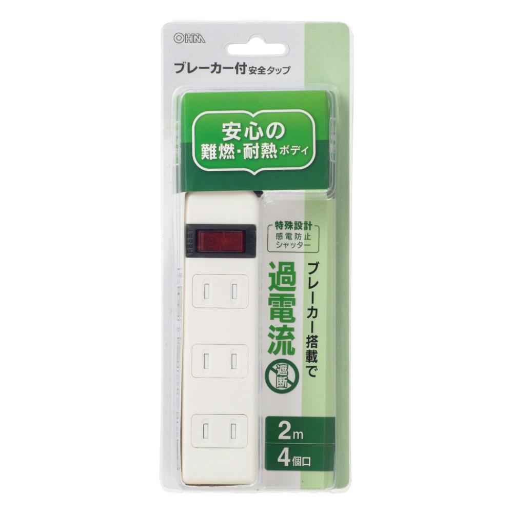 ブレーカー付き安全タップ 4口 2m HS-TV42S-W