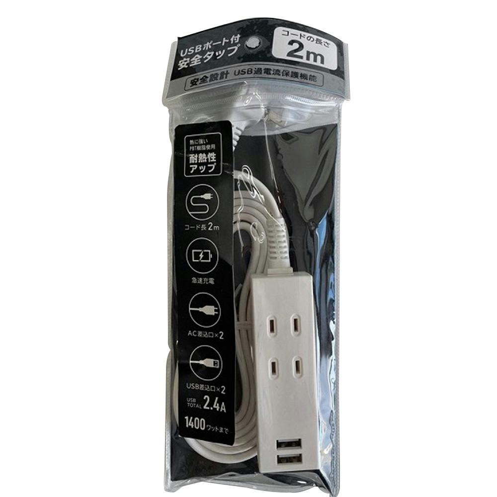 AC2口 2mタップUSB付 HS-TU22W-CA