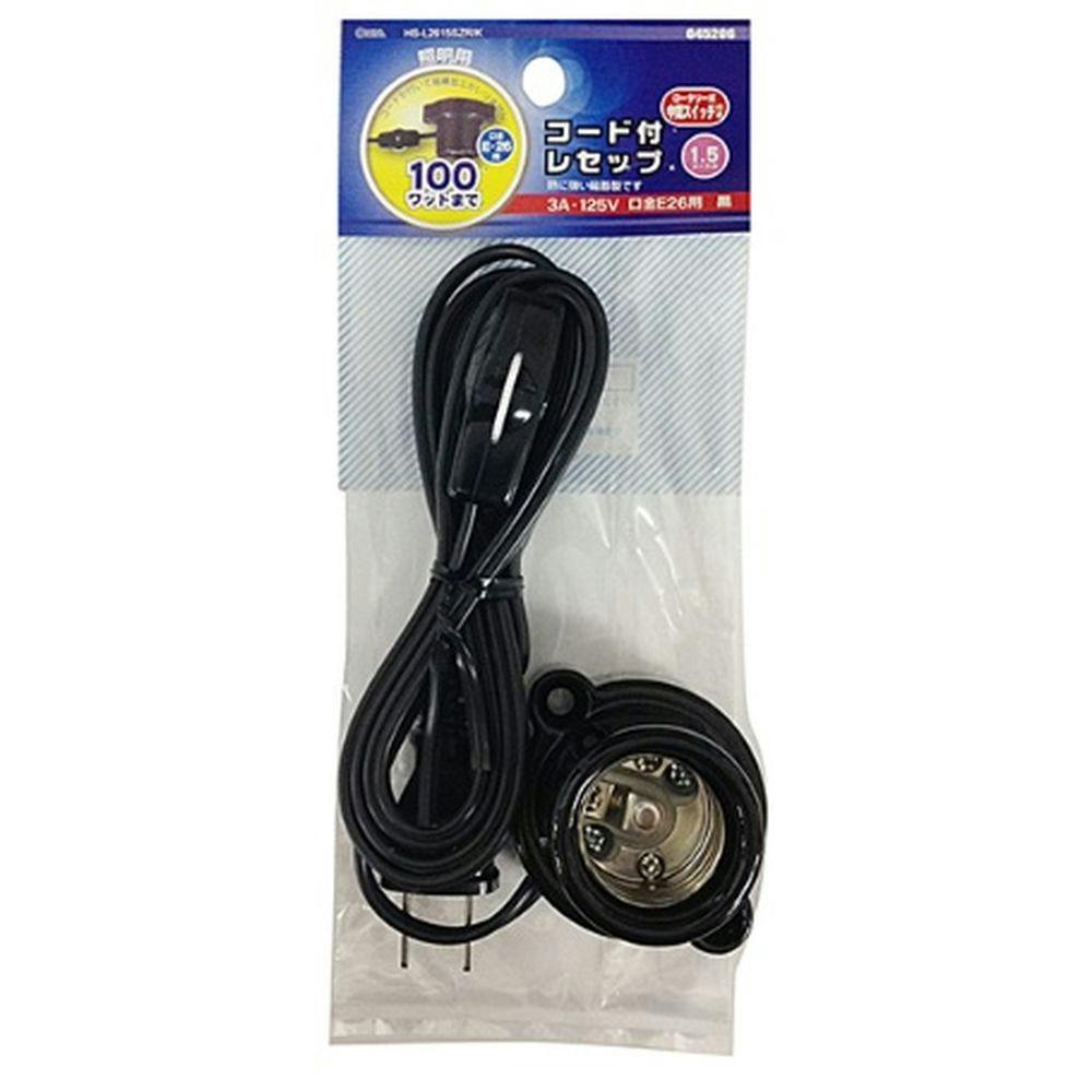 コード付き磁器レセップ E26 中間スイッチ付き 黒 1.5mコード HS-L2615ZRS-K 00-7078