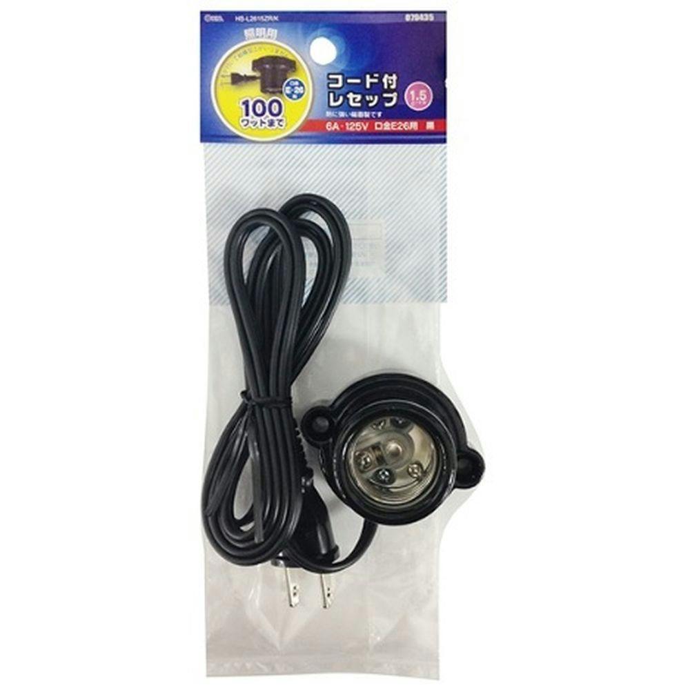 コード付き磁器レセップ E26 黒 1.5mコード HS-L2615ZR-K 00-7082