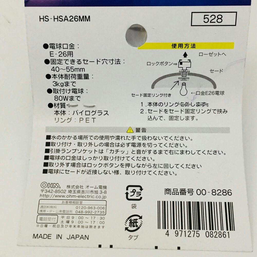 引掛ランプソケット E26 ロック付き HS-HSA26MM 00-8286