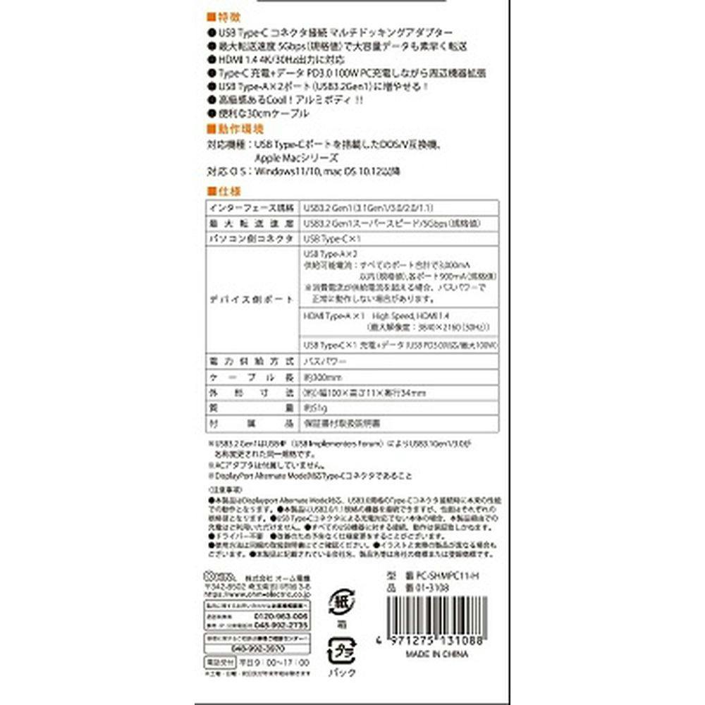 ● パソコン側コネクタ:USB Type-C×1 ● デバイス側ポート: ・USB Type-A×2・ HDMI Type-A×1・USB Type-C×1