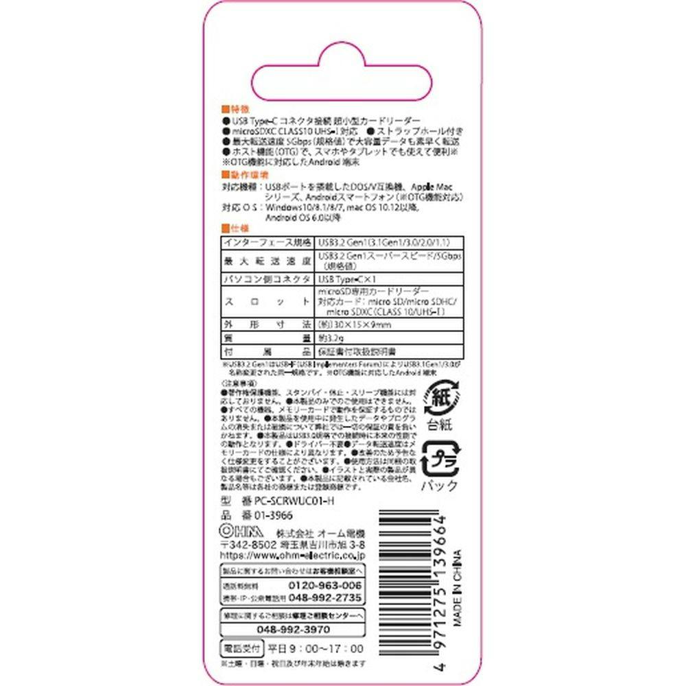 ●超高速USB3.2Gen1、USB3.1/USB3.0対応●USB Type-Cコネクタ接続 超小型カードリーダー●microSDXC CLASS10 UHS-I 対応●最大転送速度5Gbps(規格値)で大容量データも素早く転送●ホスト機能(OTG)で、スマホやタブレットでも使えて便利 ※OTG機能に対応したAndroid 端末
