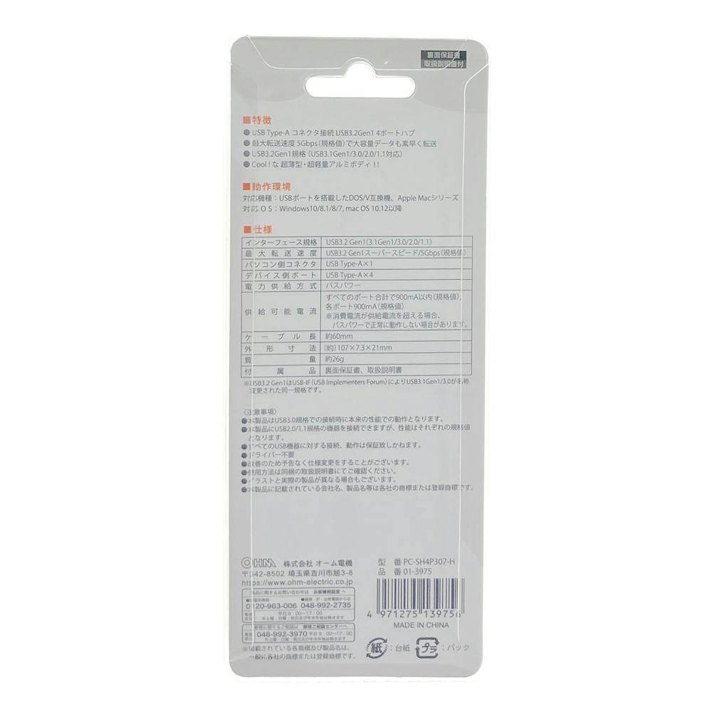USB Type-Aコネクタ接続 USB3.2Gen1(USB3.1Gen1/3.0/2.0/1.1対応) 4ポートハブ