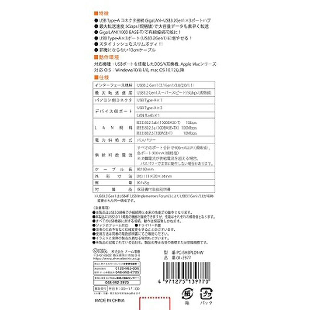 GigaLANアダプター USB3.2Gen1 ハブ PC-SH3PL09-W
