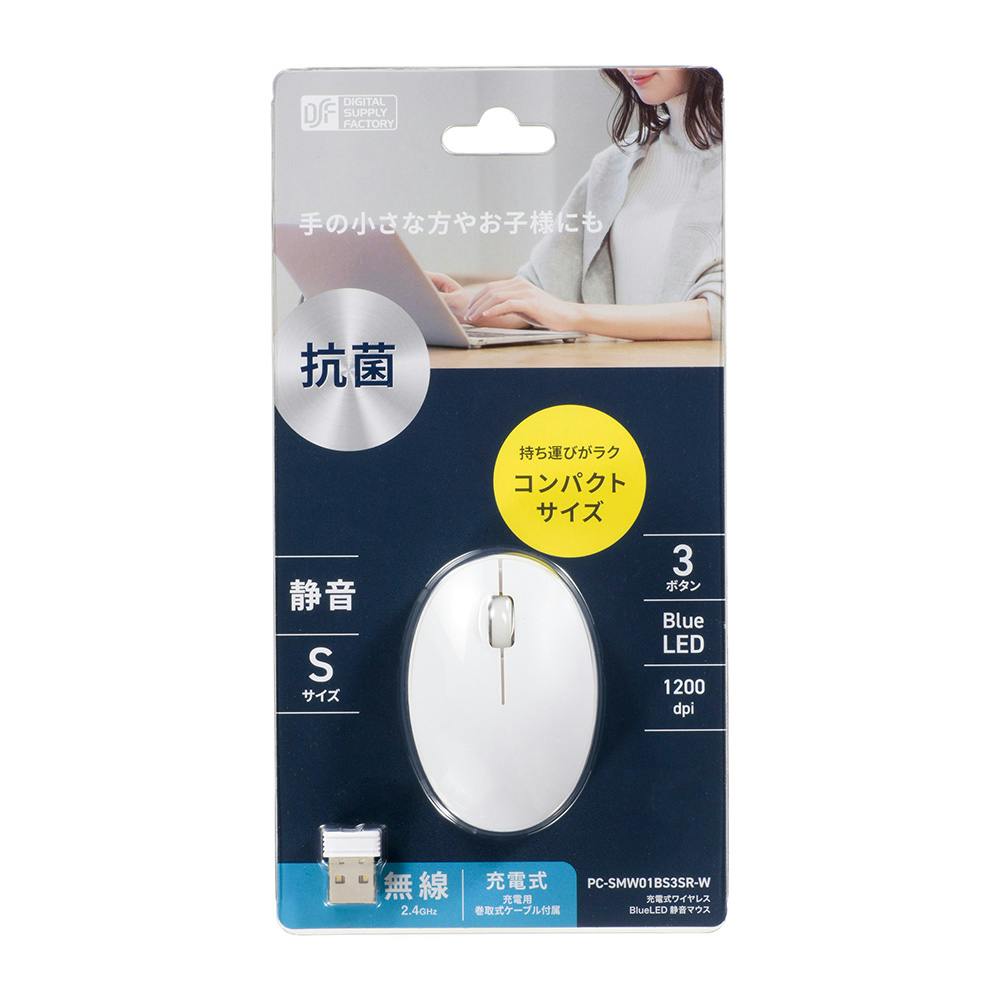 静音ワイヤレスマウス BlueLED Sサイズ 抗菌 ホワイト PC-SMW01BS3SR-W