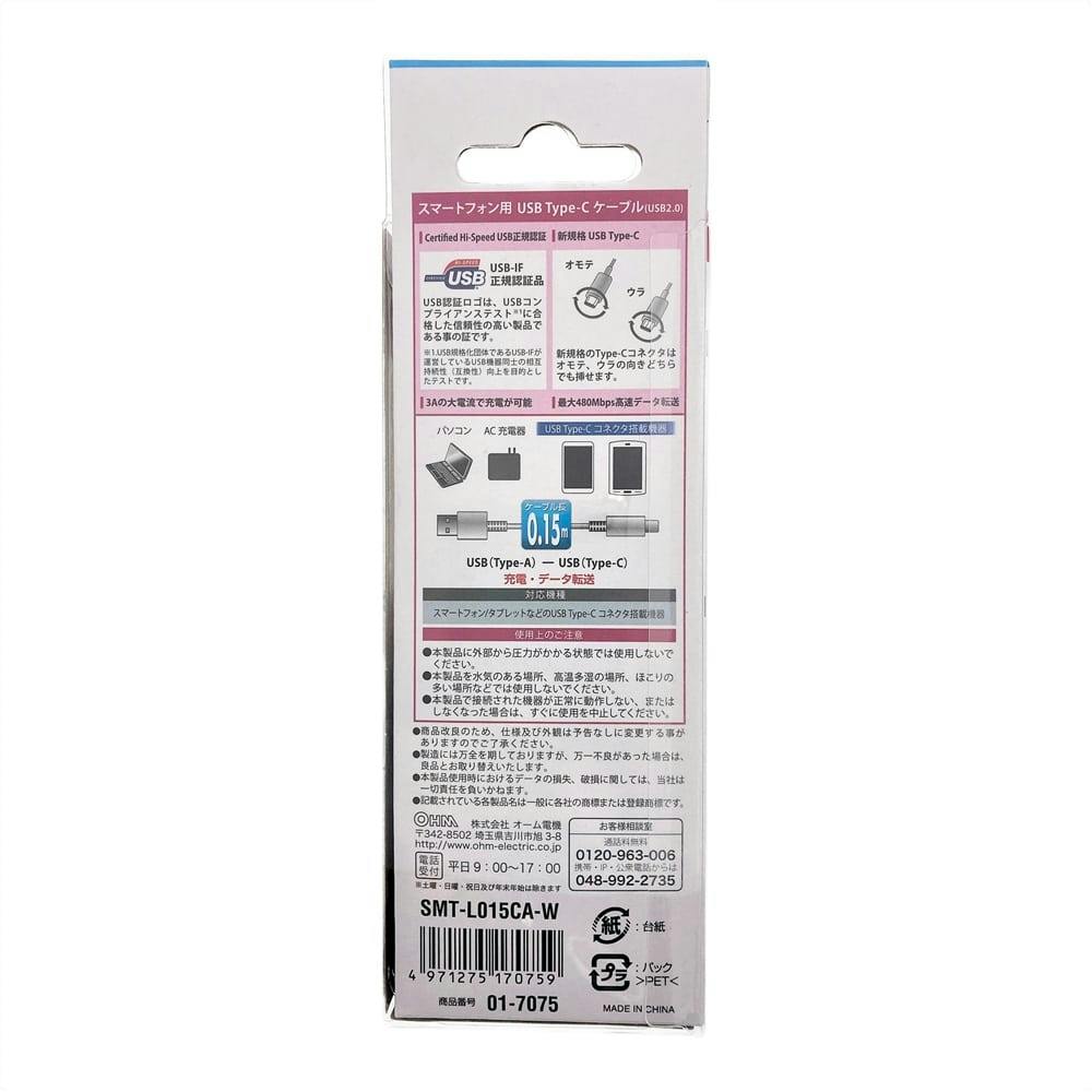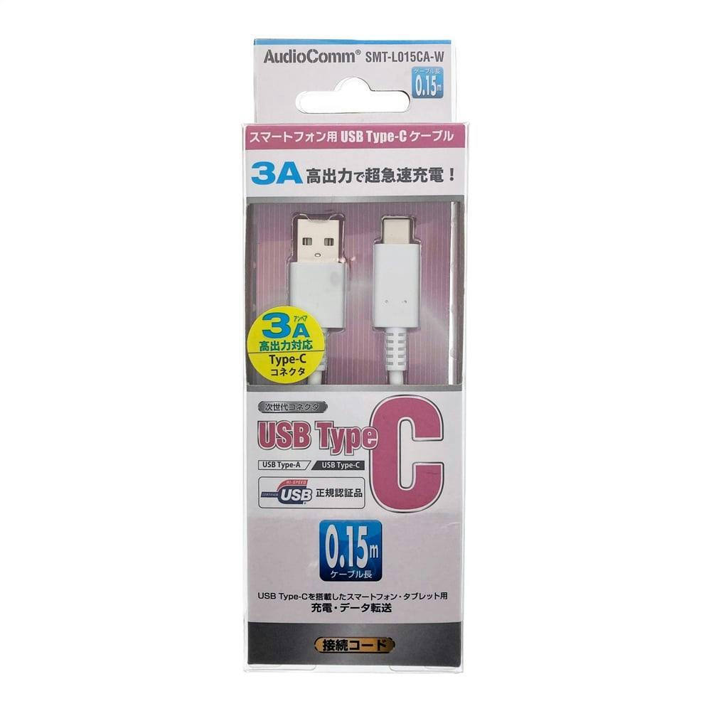 USBケーブル TypeC 15cm 白 SMT-L015CA-W 01-7075(販売終了)