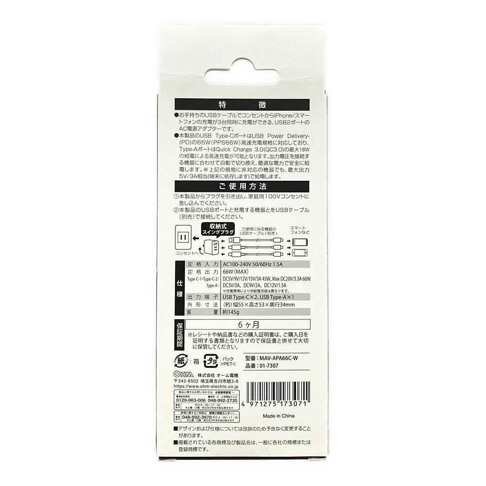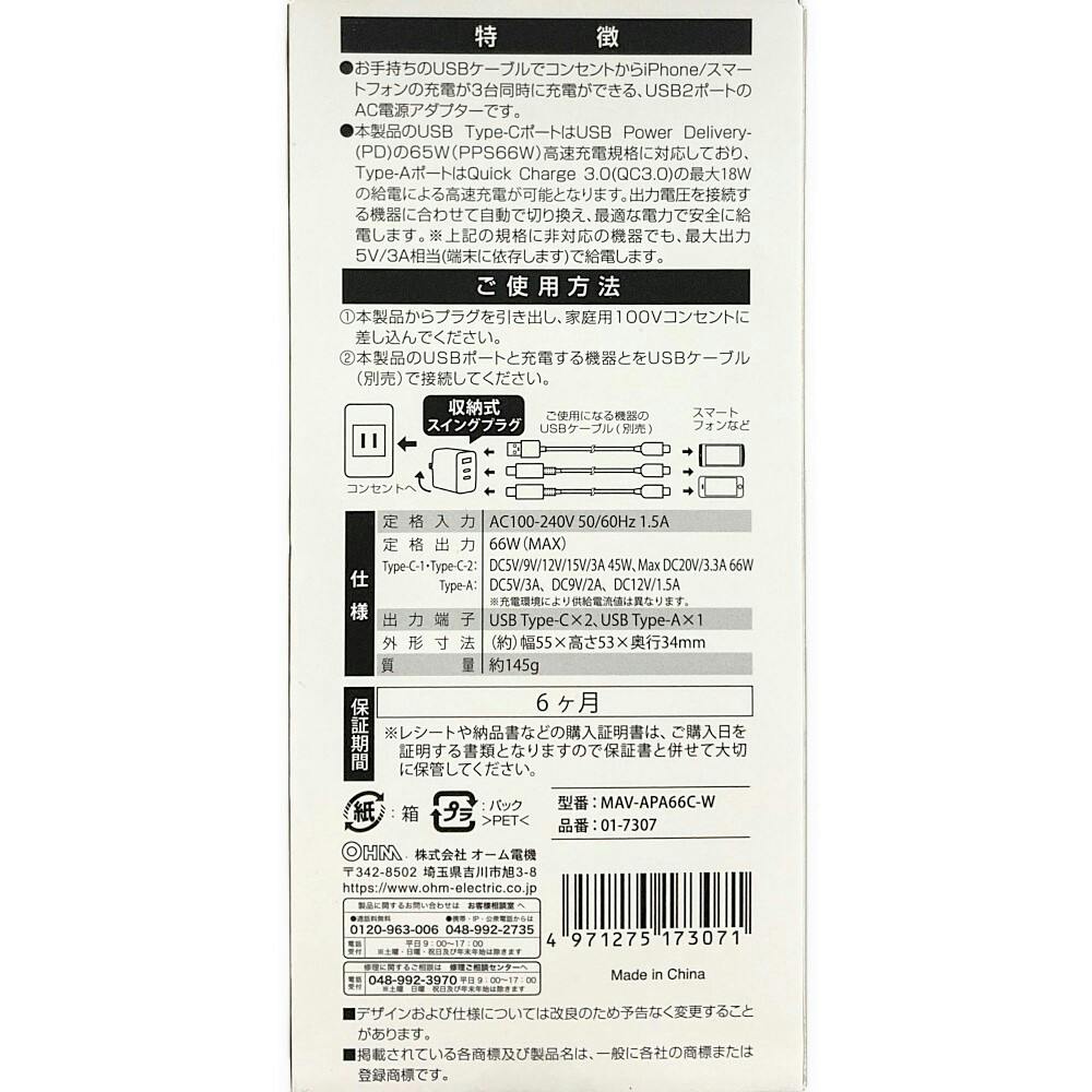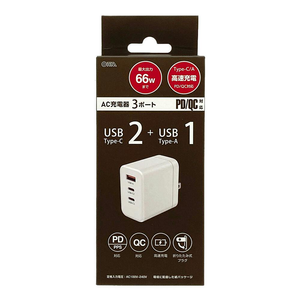 AC充電器 3ポートPD/QC対応(66W) MAV-APA66C-W