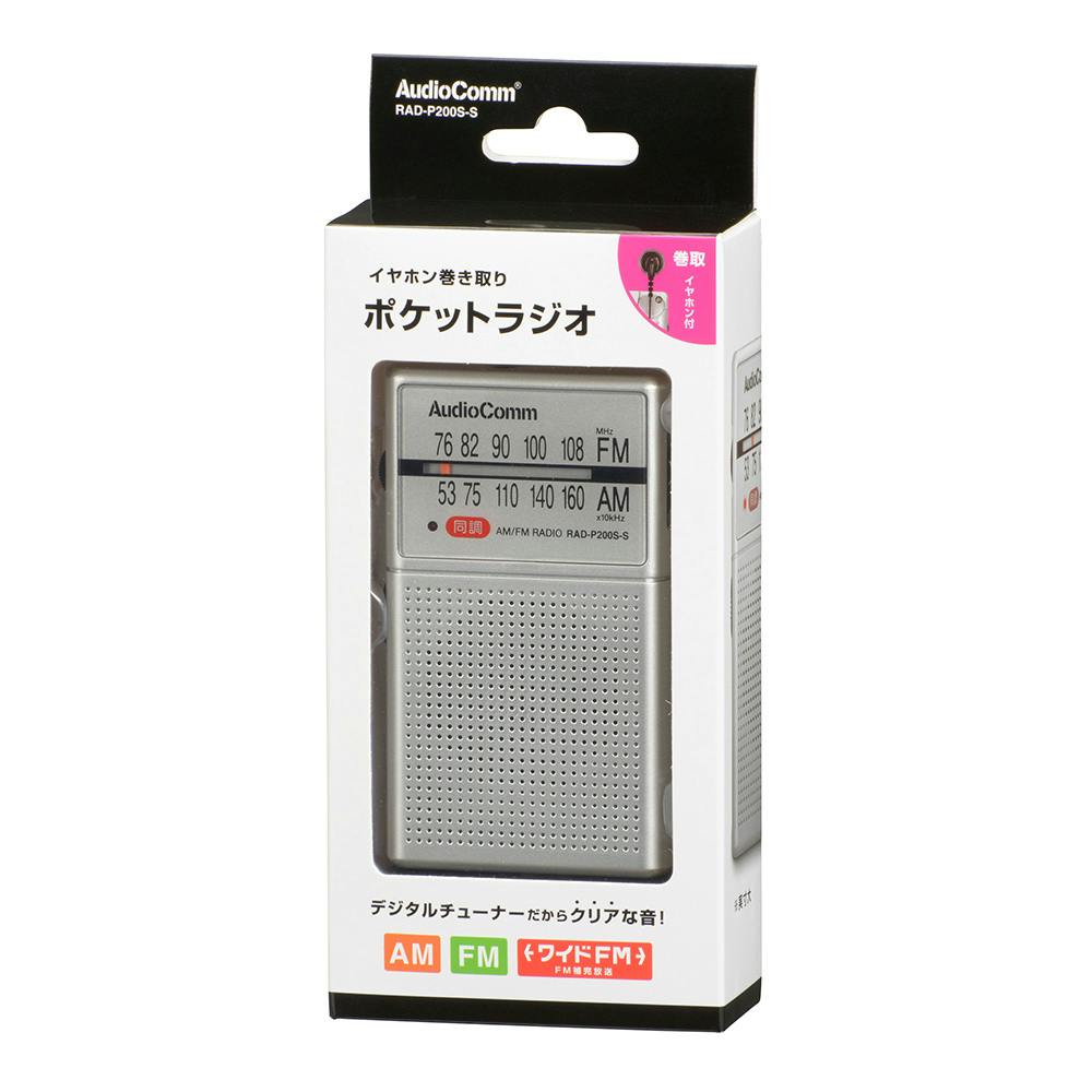 AudioComm イヤホン巻き取りポケットラジオ RAD-P200S-S