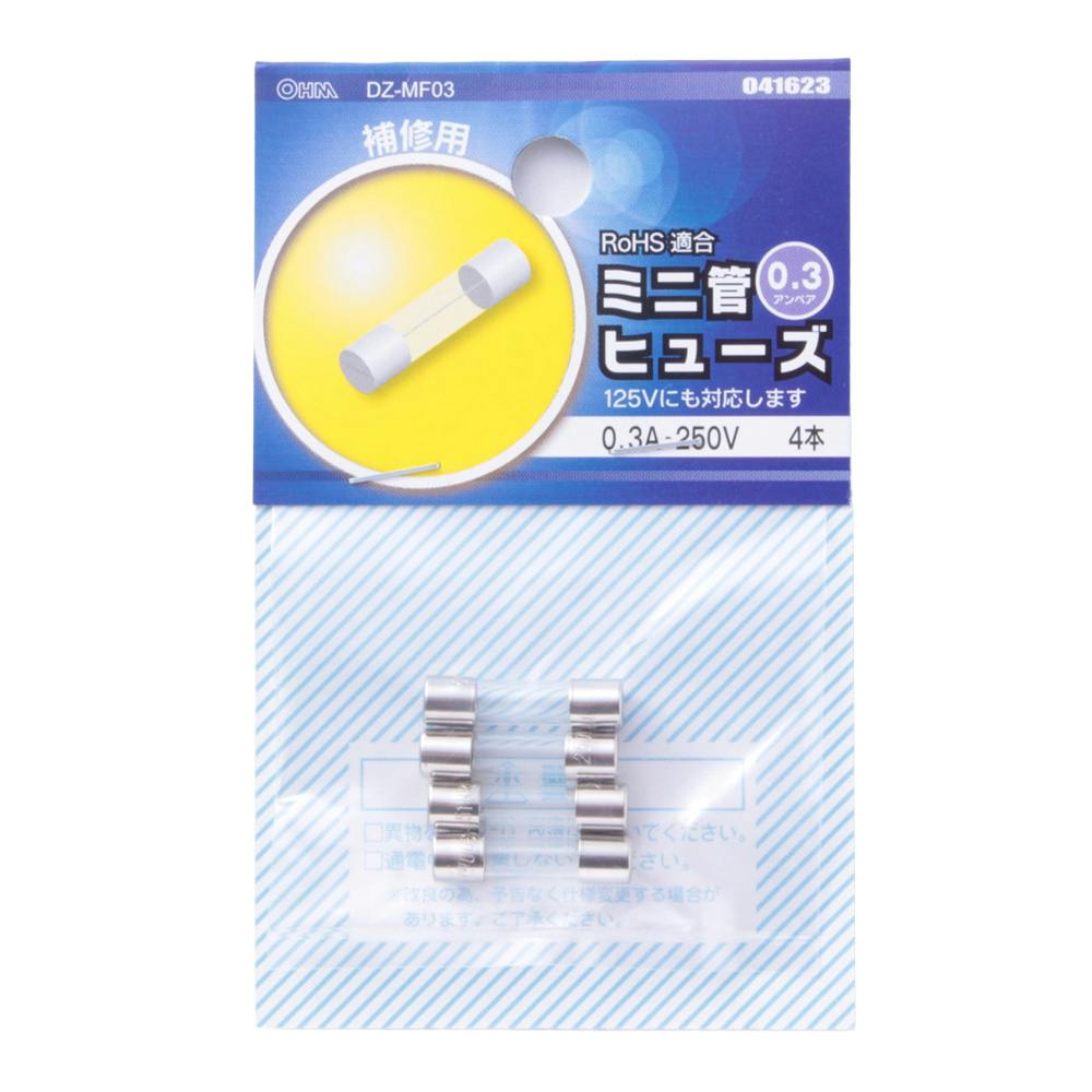 ミニ管ヒューズ 0.3A-250V DZ-MF03 04-1623 4本入