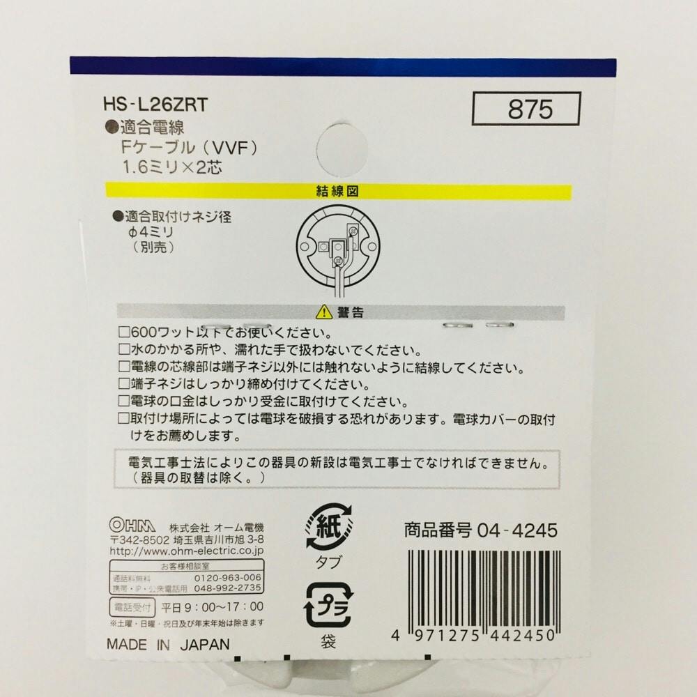 磁器レセプタクル E26 白 HS-L26ZRT 04-4245