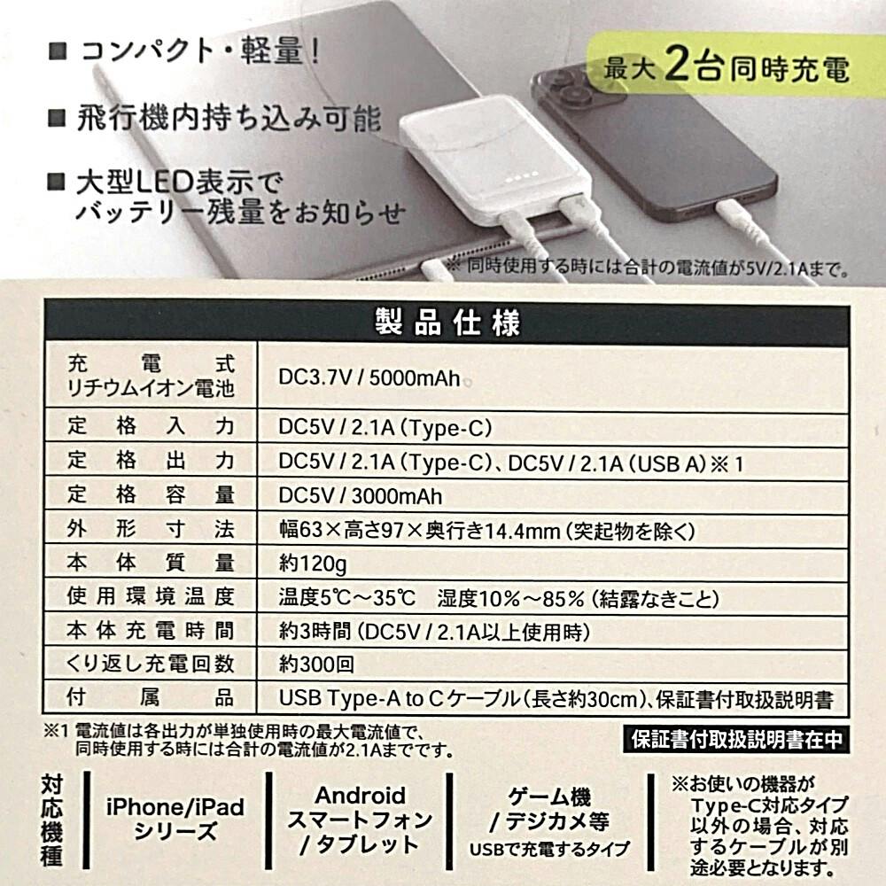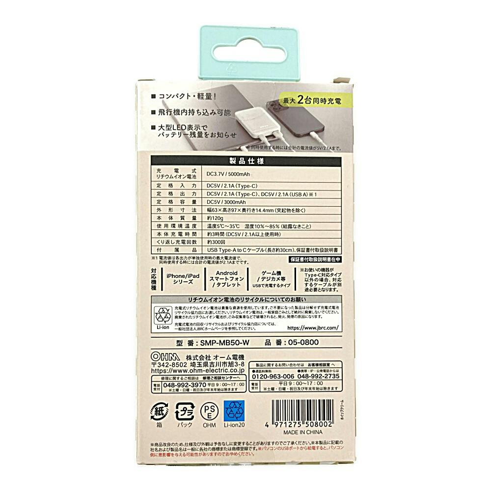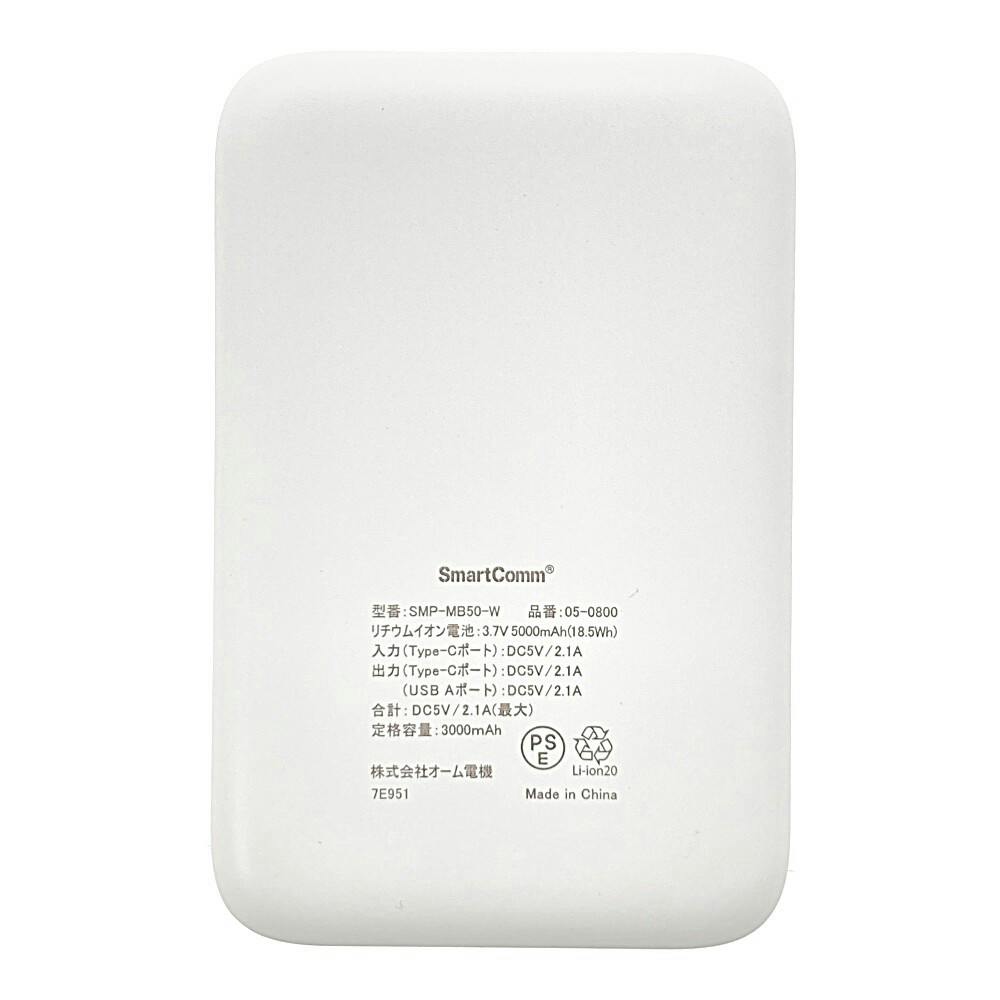 SmartComm モバイルバッテリー 5000mAh ホイップクリーム SMP-MB50-W