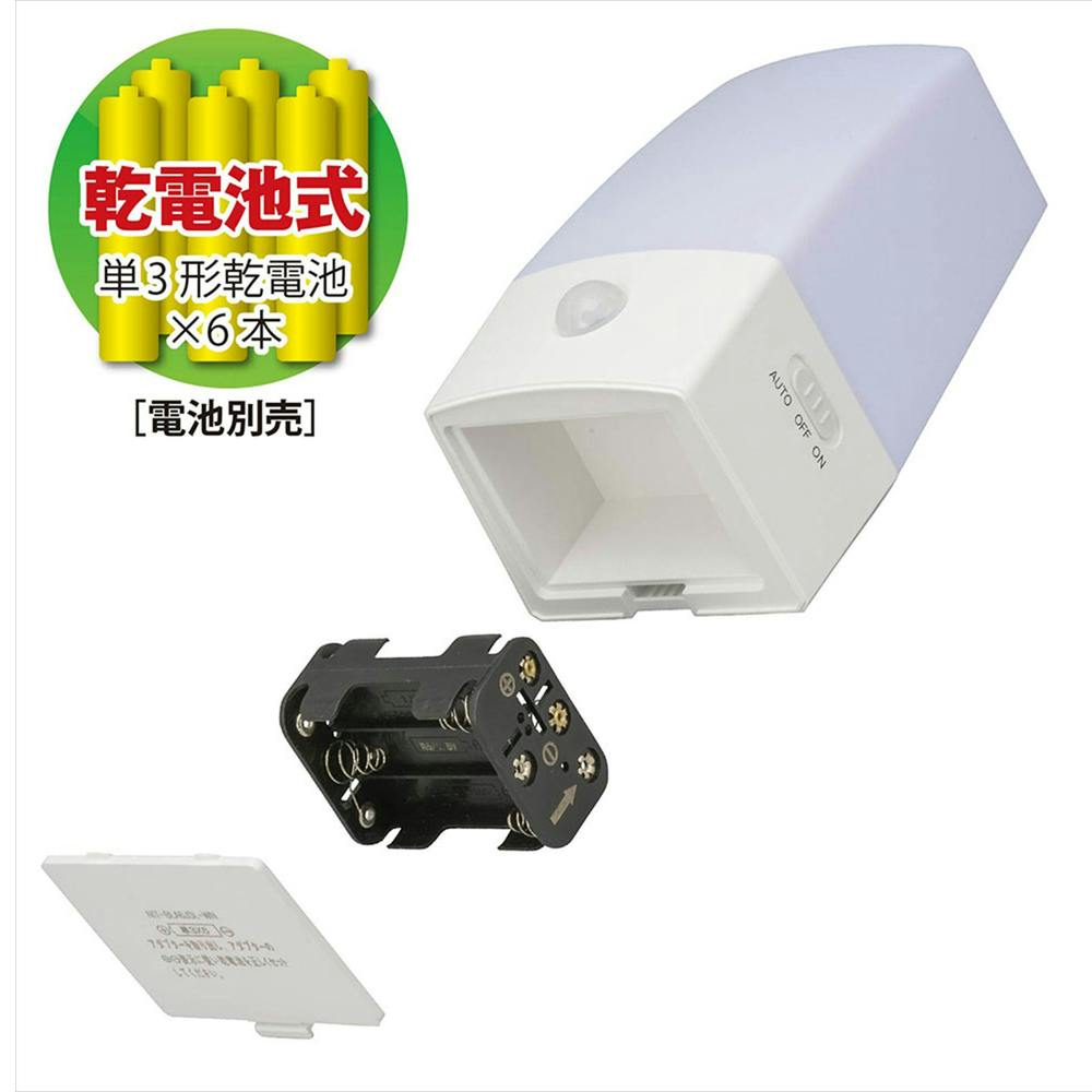 屋外でもご使用いただける防まつ形(IPX4)、乾電池式で配線不要、電源のとれない場所や配線ができない場所におすすめです