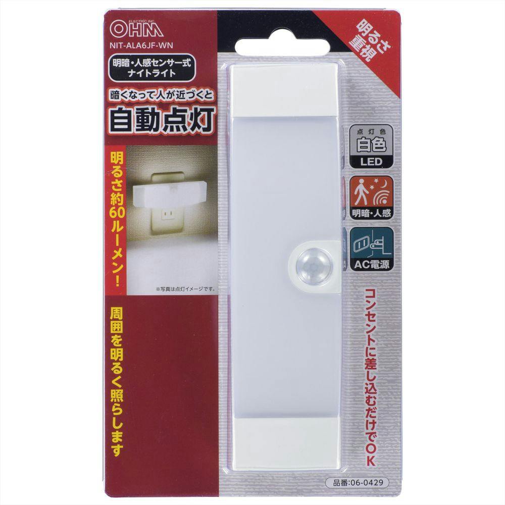 明暗・人感センサー式ナイトライト NIT-ALA6JF-WN