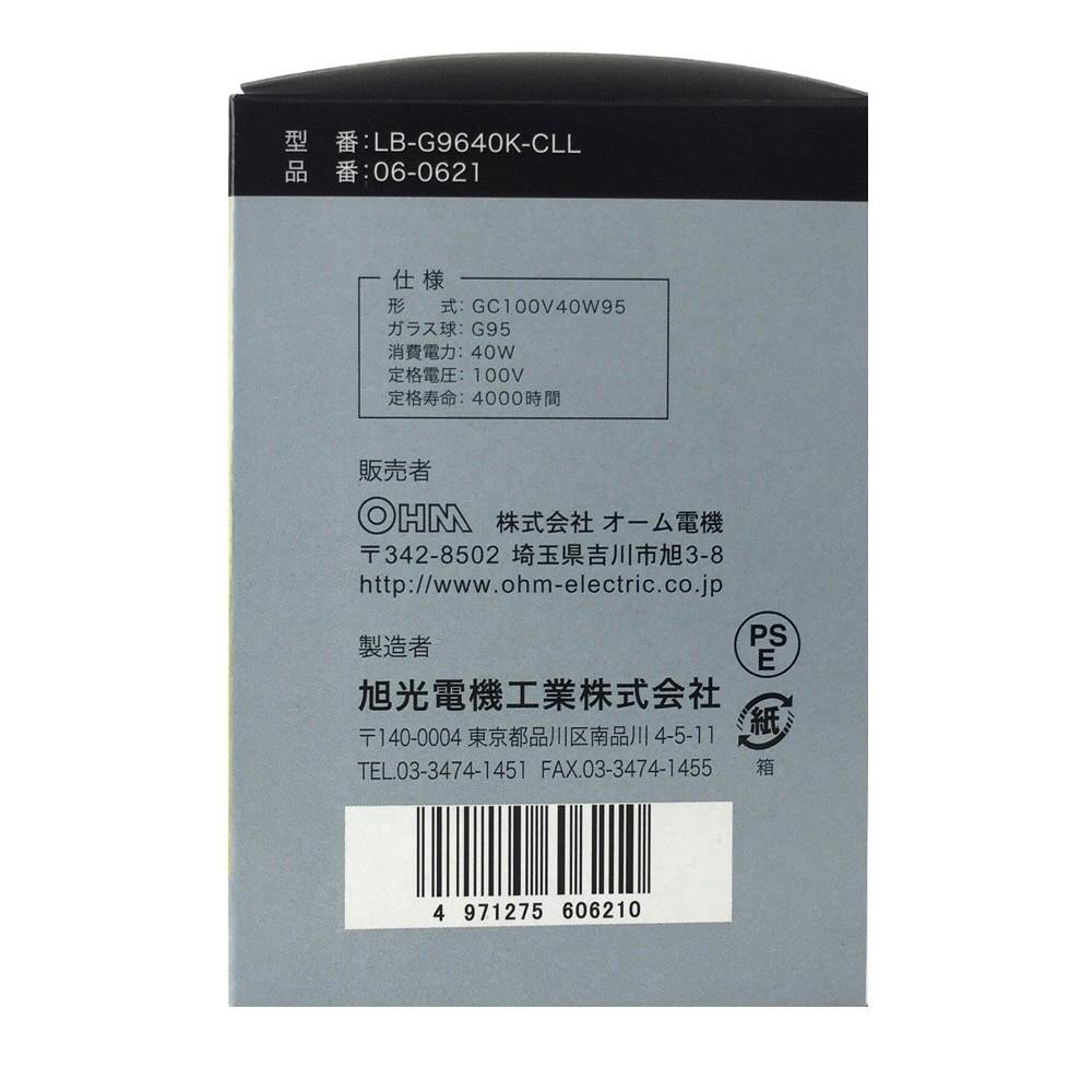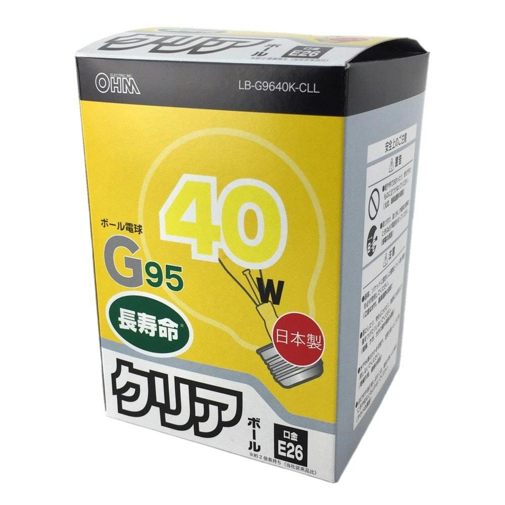 白熱ボール電球 40W E26 G95 クリア LB-G9640K-CLL