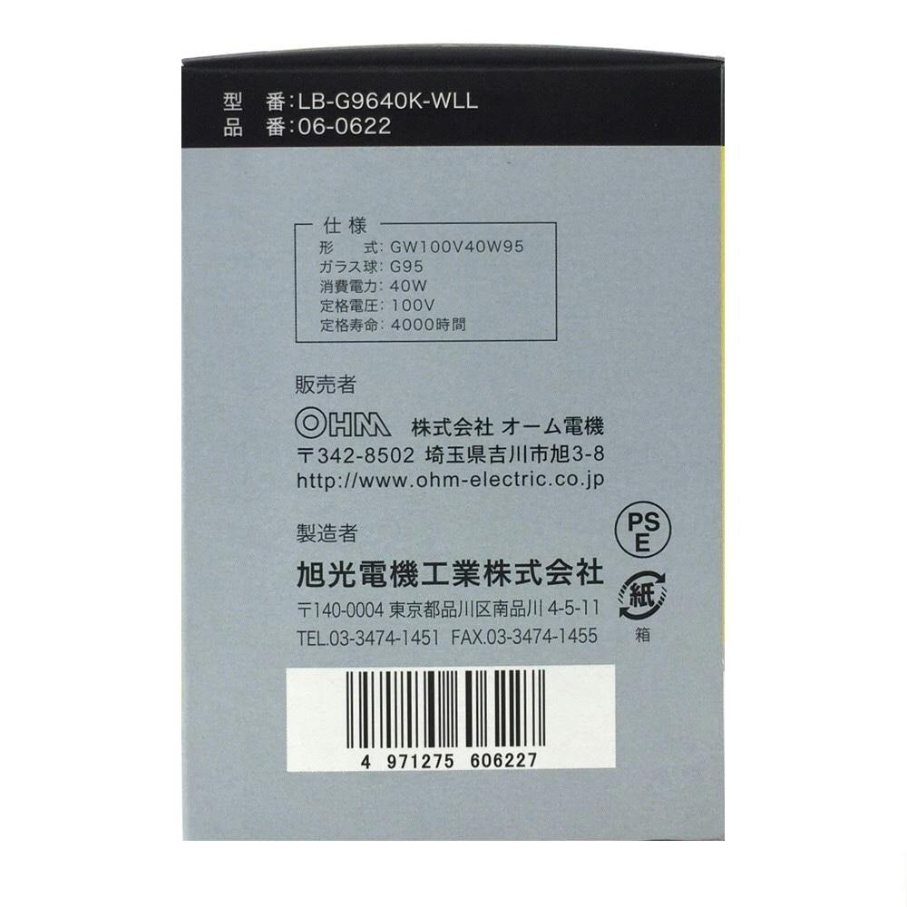 白熱ボール電球 40W E26 G95 ホワイト LB-G9640K-WLL