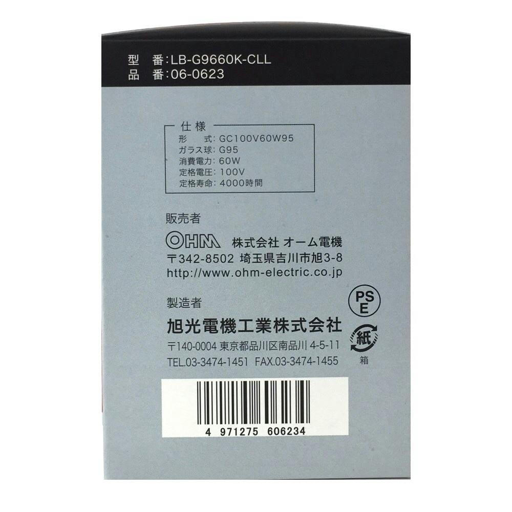 白熱ボール電球 60W E26 G95 クリア LB-G9660K-CLL