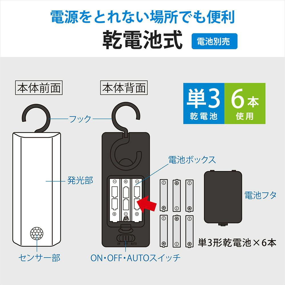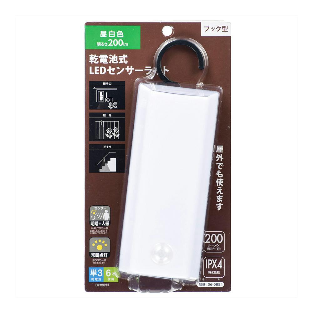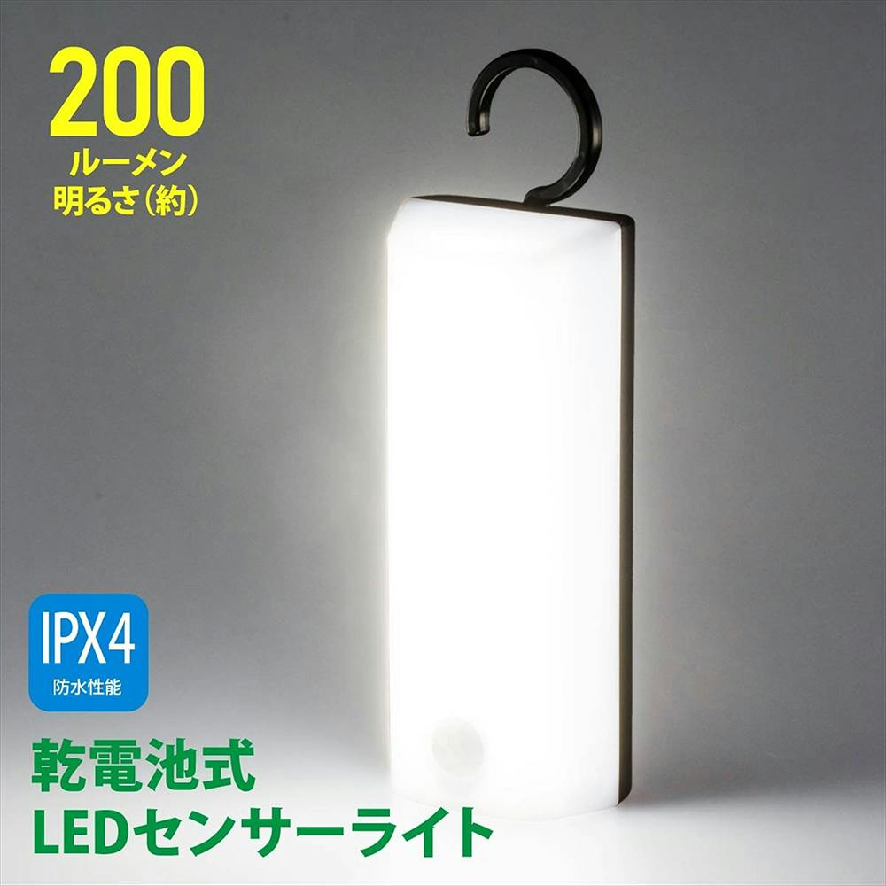 LEDセンサーライト 乾電池式 フック型 昼白色 200ルーメン LS-B200JF-3