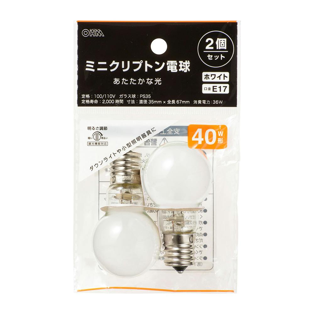 ミニクリプトン球 40W ホワイト 2P LB-PS3536W-2PN 06-0878