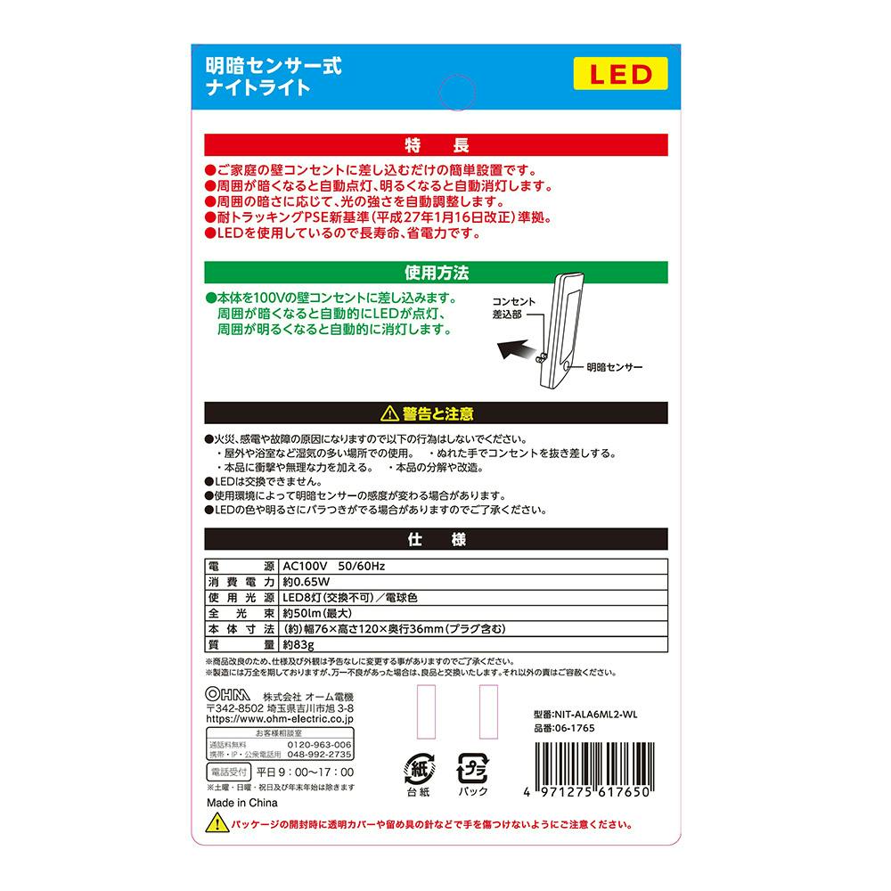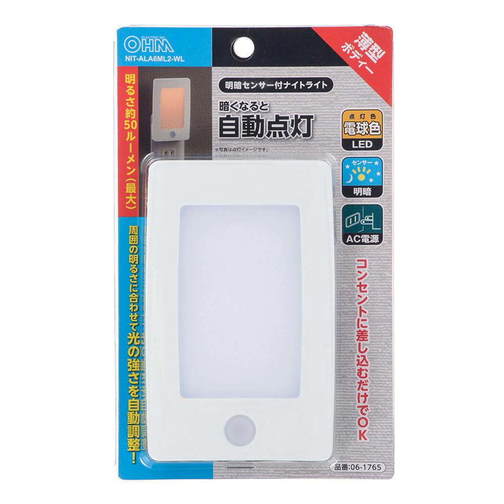 LEDナイトライト 明暗センサー 薄型 電球色LED NIT-ALA6ML2-WL
