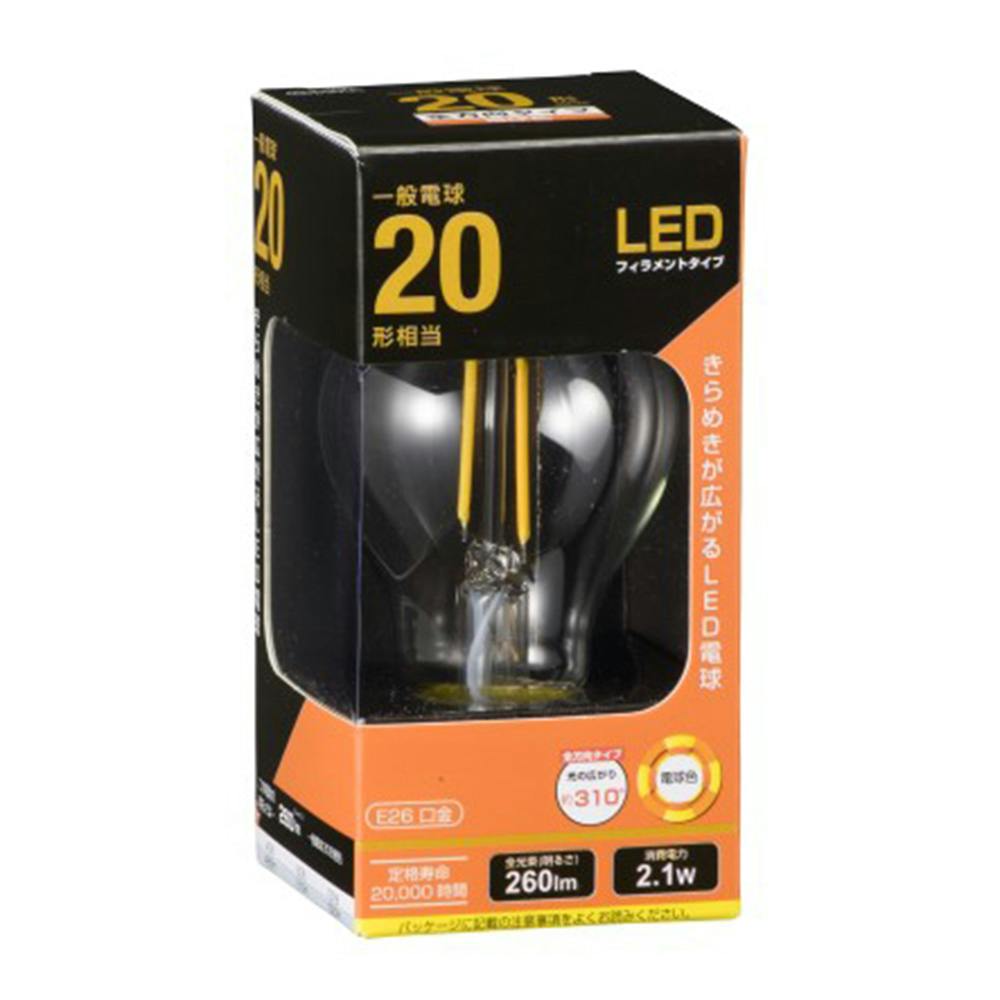 LEDフィラメントタイプ電球 E26 20形相当 電球色 LDA2L C6 06-3461