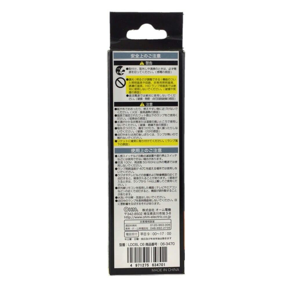 LED電球 フィラメント シャンデリア球 E26 60形 電球色 クリア 全方向 LDC6L C6 06-3
