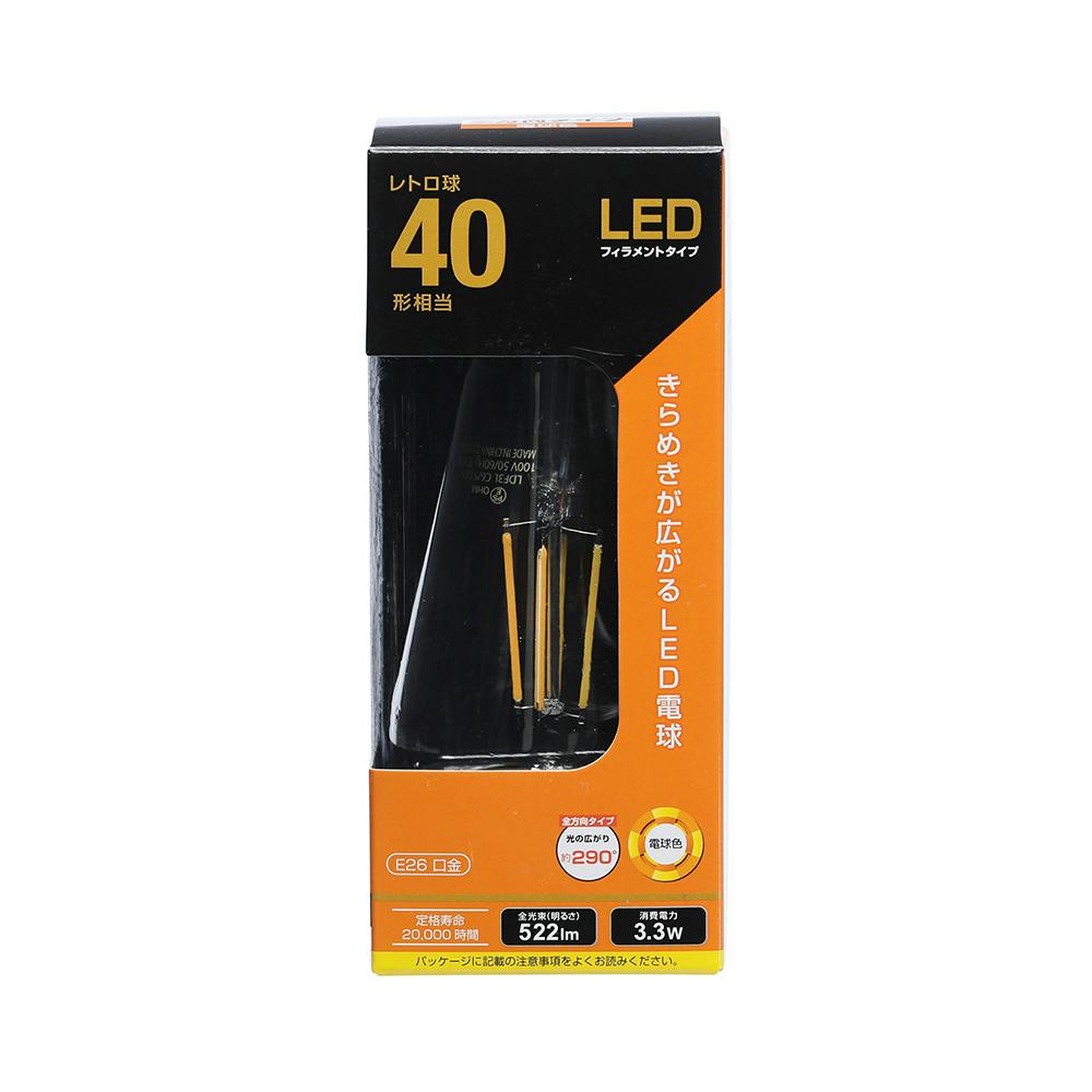 LEDフィラメントタイプレトロ球 E26 40形相当 電球色 06-3892 LDF3L C6/ST64
