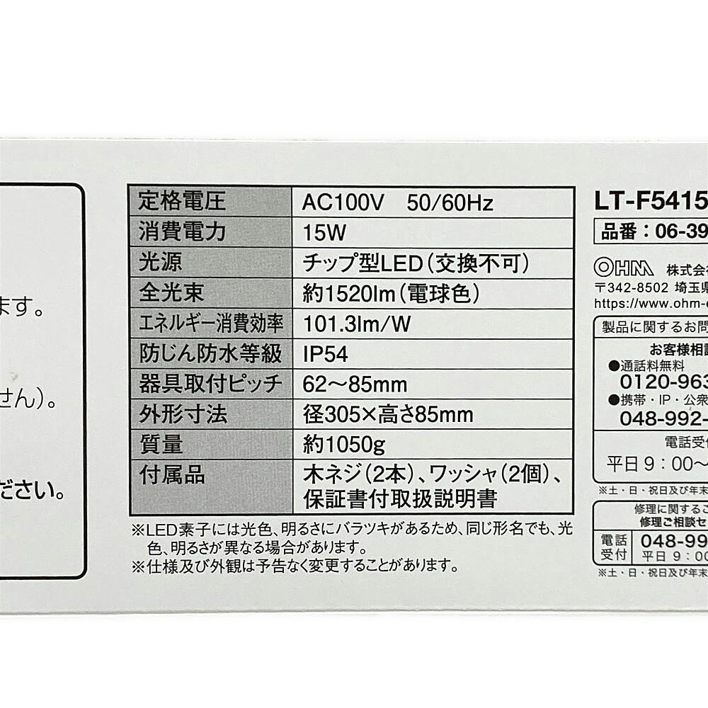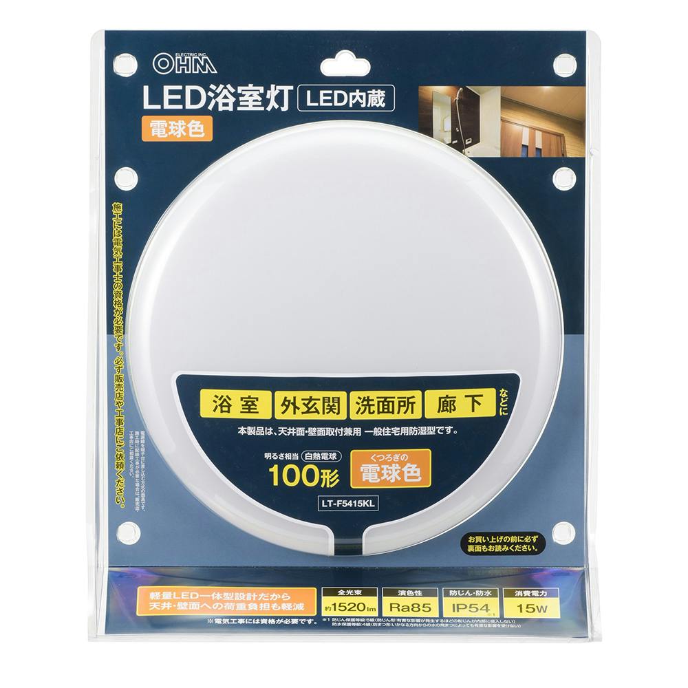 LED浴室灯 100形相当 電球色 要電気工事 LT-F5415KL
